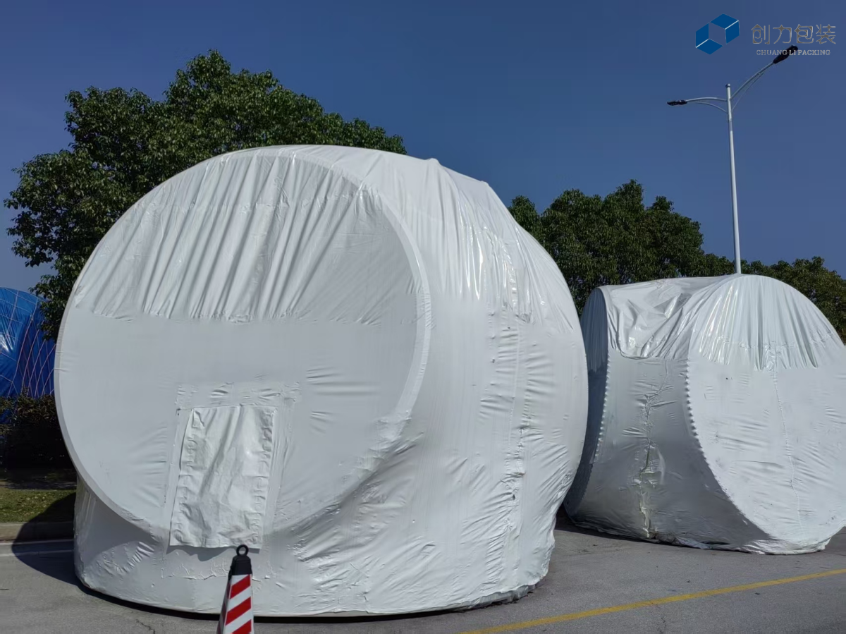 大型工业设备、异形构件在运输存储中面临包装难题。传统方式难以紧密贴合其不规则表面,易导致运输中包裹松弛,造成摩擦、进水或污染(如图所示户外大型设备)。针对此痛点,HT10000无焰式热收缩工具提供了专业解决方案。它专为重型、异形货物设计,通过无需明火的强劲热风,快速均匀收缩厚质缠绕膜,使薄膜紧密贴合货物轮廓,形成牢固保护层,有效应对户外与长途运输考验。